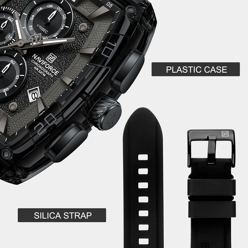 NAVIFORCE 6101 Black Quartz Watch Water Resist 3 Bar Men Chronograph