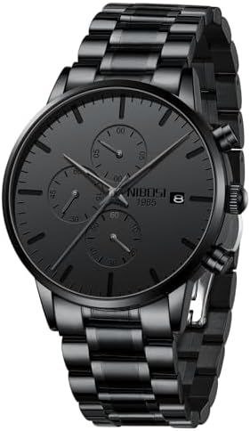 NIBOSI Men’s Watches Black Dial Stainless Steel Strap Date