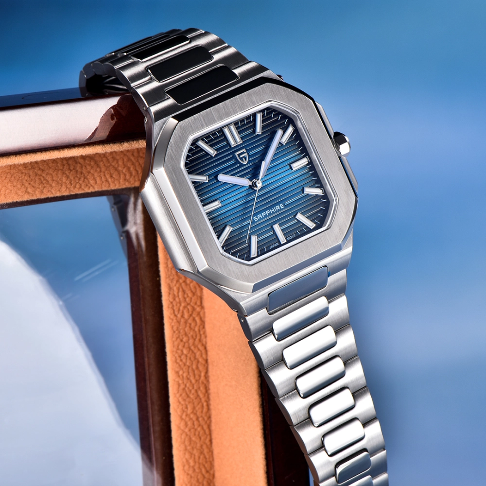 Material: Full stainless steel construction, Synthetic sapphire dial glass, Ceramic Bezel, and top Japan TMI VH31 Quartz Movement