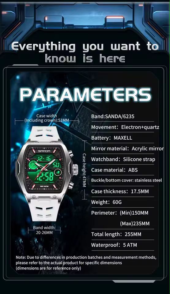 Be the first to review “SANDA 6235 Brand Men Watches Dual Time Alarm Sports”